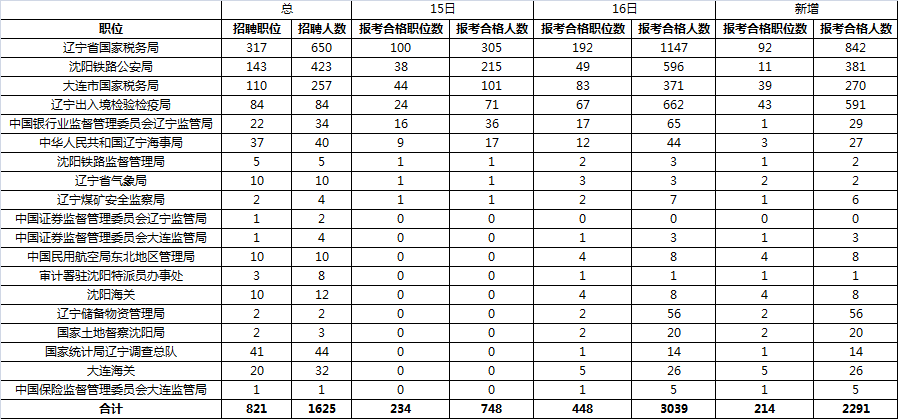 【截止16日16時】2016國考遼寧審核人數達3039人,出入境檢驗檢疫局最受歡迎