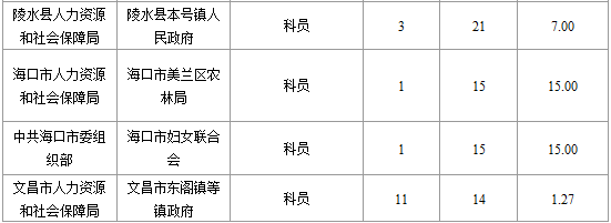 截至14日16時,報名人數前三位的部門依次是:海南省公安廳、海口市人力資源和社會局、三亞市人力資源和社會局,三部門報名總人數達452人,占報名總人數的29.3%。