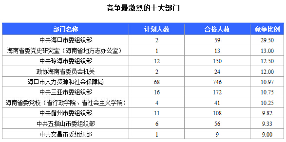 為幫助廣大考生更清晰的了解今日報名情況,中公網校整理了報名人數前十位的部門以及競爭比例最激烈的十大部門,供廣大考生參考: