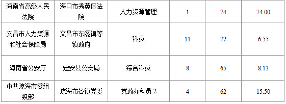 截止15日16時,招錄比例的職位為海南省高級人民法院海口市秀英區法院人力資源管理一職,招錄1人,截止15日16時通過人數為74人。