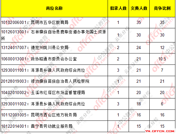 2016云南省考審核人數達35人,最熱職位35:1【截止3月18日9時】