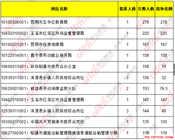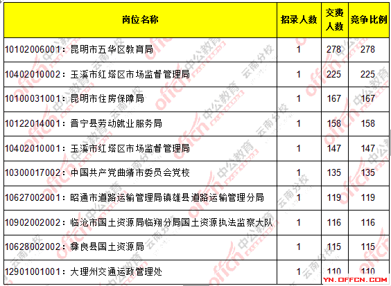 2016云南省考繳費人數達35177人,最熱職位278:1【截止20日10時】