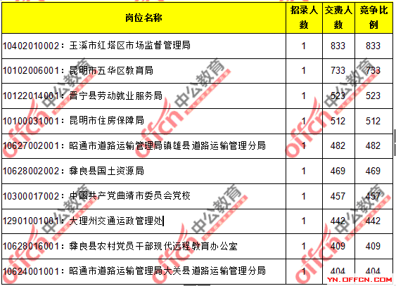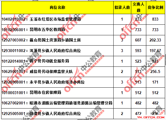 2016云南省考繳費人數達171198人,最熱職位833:1_截止24日14時
