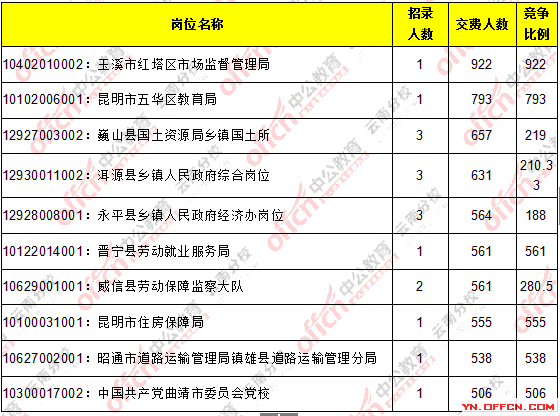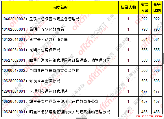 2016云南省考繳費人數達183741人,最熱職位922:1_截止25日14時