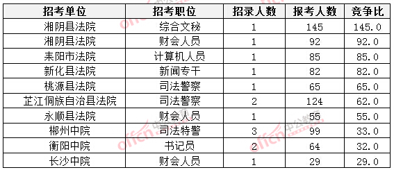 2016年湖南法院報名人數為4485人,最熱職位競爭比例為145:1(3月27日)