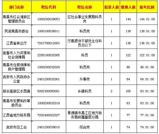 全省報考繳費人數排名前十的職位