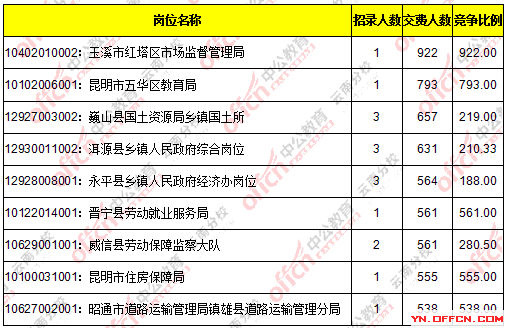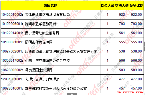 2016云南省考繳費人數達183747人,最熱職位922:1_最終數據