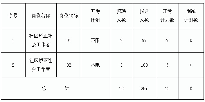 根據(jù)《2016年句容市司法局公開招聘社區(qū)矯正社會工作人員公告》,現(xiàn)將報名情況及計劃削減情況公示如下: