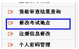 考試所在地是報考人員選擇參加公共科目筆試的地點。如果此信息填寫錯誤,還有補救的機會。考生可點擊右側“修改考試地點”進行考試地點修改。