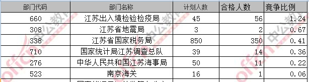 為幫助廣大考生更清晰的了解今日報名情況,江蘇中公網校整理了審核通過人數前幾位的部門以及競爭比例最激烈的部門,供廣大考生參考: