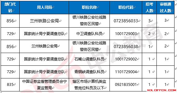 2017國考寧夏地區(qū)各崗位報(bào)名情況