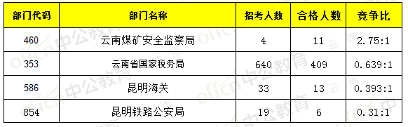 截止15日17時,招錄比例的職位為云南省國家稅務局,職位代碼是0701565002,招錄1人,通過人數21人,競爭比21:1 。