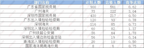 為幫助廣大考生更清晰的了解今日報(bào)名情況,廣東中公網(wǎng)校整理了審核通過人數(shù)前十位的部門以及競爭比例最激烈的十大部門,供廣大考生參考: