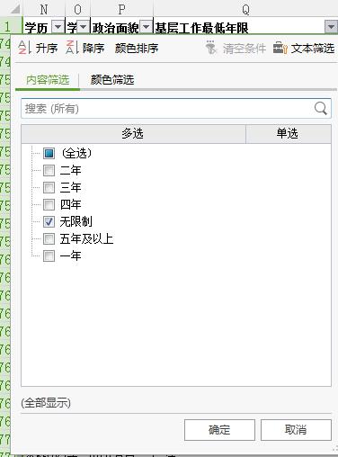 由于應屆畢業生是國考大軍中“陣容龐大”的一個群體,因此首先將基層工作經歷進行篩選是讓職位表快速“縮水”的有效途徑。應屆畢業生可以通過篩選將基層工作經歷要求為無限制的職位直接挑選出來,社會人員也可根據自身條件篩選對應職位。
