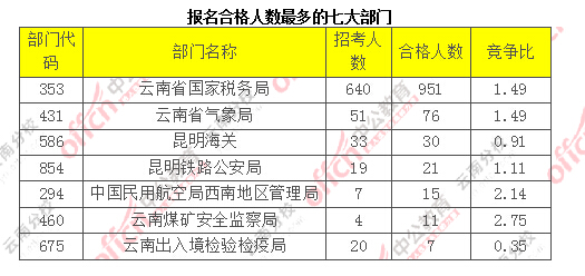 截止16日8時,招錄比例的職位為云南省國家稅務局,職位代碼是701565002,招錄1人,通過人數26人,競爭比26:1。