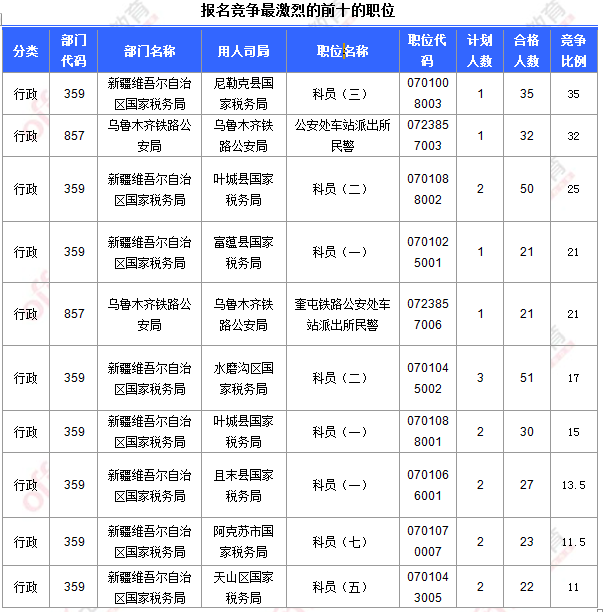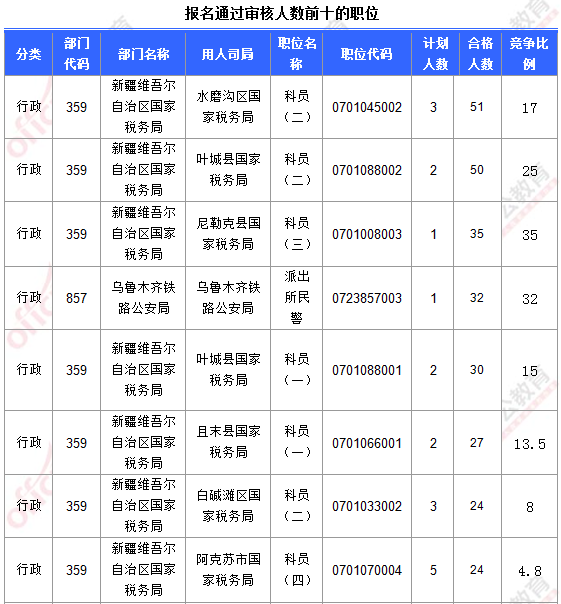 【截至16日16時】2017國考報名新疆1341人過審 最熱職位17:1