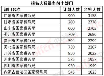 【截至16日16時】2017國考報名過審67340人 國稅部門“一統江山”