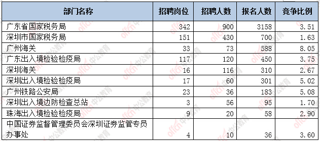 為幫助廣大考生更清晰的了解今日報名情況,廣東中公網校整理了審核通過人數前十位的部門以及競爭比例最激烈的十大部門,供廣大考生參考: