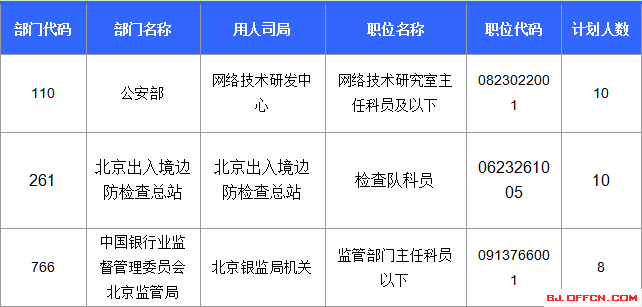 截止到16日16時,工作地點在北京的職位共有654個無人報考,占全部職位的55.9%。下面是無人報考職位一覽表,中公網校專家建議廣大考生多關注一些較冷職位,避免激烈競爭,結合自身條件,找到屬于自己的職位。