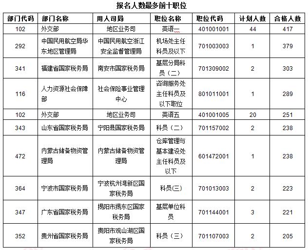 二、外交部職位蟬聯(lián)“人氣寶座”。最熱職位競(jìng)爭(zhēng)比高達(dá)379:1