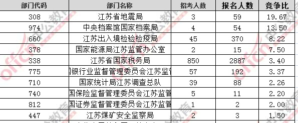 報名通過審核人數前十的職位主要集中在江蘇省國家稅務局、江蘇省地震局,具體信息如下: