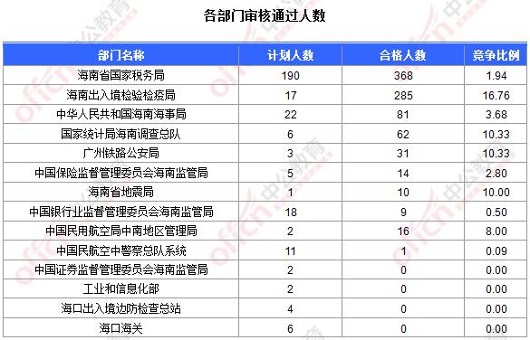 為幫助廣大考生更清晰的了解今日報名情況,海南中公網校整理今天各部門的報名情況供廣大考生參考: