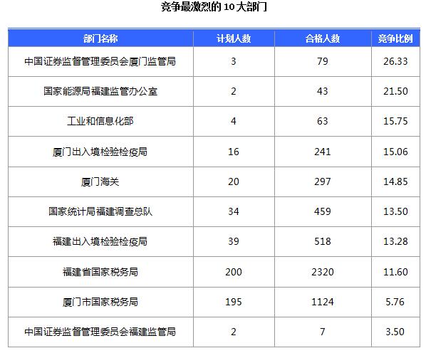 截止到17日16時(shí),通過(guò)審核人數(shù)前三位的部門(mén)依次是:福建省國(guó)家稅務(wù)局、廈門(mén)市國(guó)家稅務(wù)局、福建出入境檢驗(yàn)檢疫局,三部門(mén)通過(guò)審核總?cè)藬?shù)達(dá)3962人,占通過(guò)審核總?cè)藬?shù)的74%。