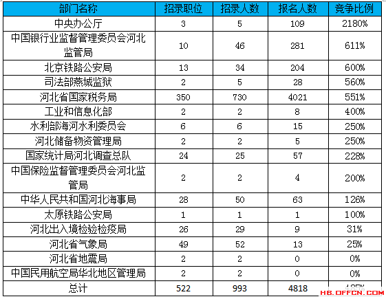 為幫助廣大考生更清晰的了解今日報名情況,河北中公教育整理了各部門審核通過人數以及競爭比例,供廣大考生參考: