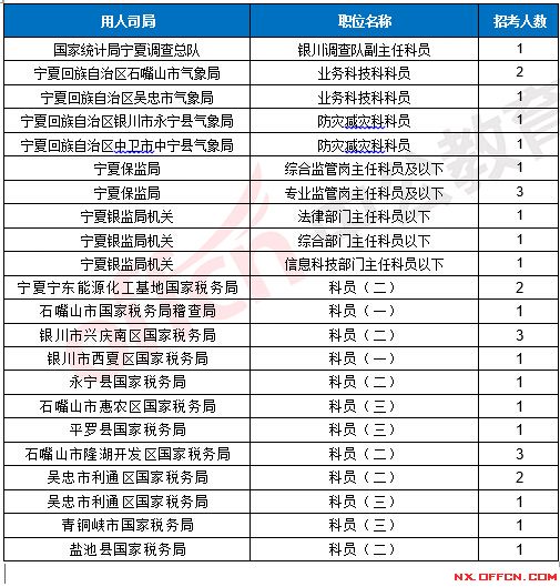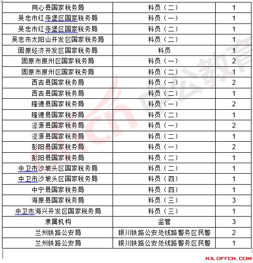 點(diǎn)擊查看>>>2017年國(guó)家公務(wù)員寧夏地區(qū)網(wǎng)上報(bào)名統(tǒng)計(jì)表(截止17日16時(shí))
