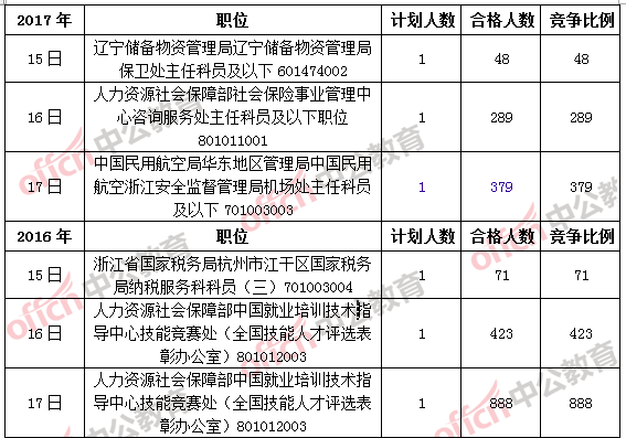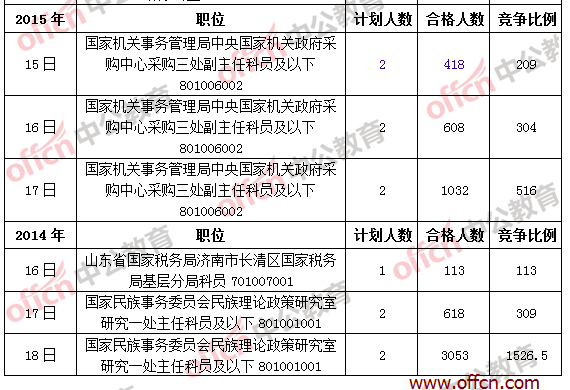 另一方面,中公教育專家在研究了近四年的國考報名數據發現,前三年最熱職位在第二天就顯露出來,且一路飆升,即使競爭比很高,考生還是在扎堆報考,如2016國考的人力資源社會部中國就業培訓技術指導中心技能競賽處(全國技能人才評選表彰辦公室)801012003一職,如2015國考的國家機關事務管理局中央國家機關政府采購中心采購三處副主任科員及以下801006002一職,再如2014國考的國家民族事務委員會民族理論政策研究室研究一處主任科員及以下801001001一職,這些職位均為最晚第二天就登上最熱職位,一直到報名結束都穩坐寶座。但今年情形有所逆轉,從報名前三天情況來看,每天的最熱職位都在變換,且昨天和今天的兩個職位競爭比差距并未很大,誰會成為今年最熱職位現在還無法確定。這也說明了考生報名更加理性,不再扎堆報考,與“國考炮灰”說拜拜。