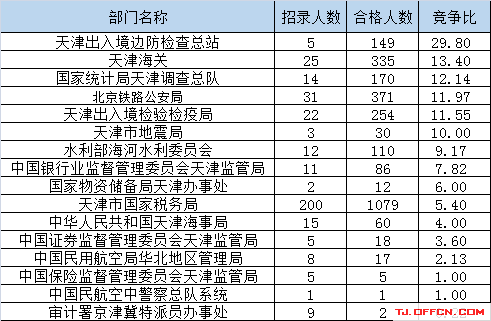 為幫助廣大考生更清晰的了解今日報名情況,天津中公網校整理了審核通過人數前五位的部門以及競爭比例最激烈的五大部門,供廣大考生參考: