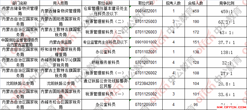 截止到18日16時,競爭比例的職位為內蒙古儲備物資管理局倉庫管理與基本建設處主任科員及以下一職,招錄1人,截止到17日16時通過人數為459人!