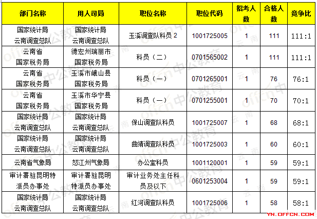 【截至18日16時】2017國考報名云南7174人過審,有兩職位旗鼓相當