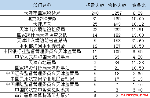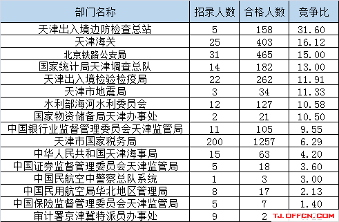 為幫助廣大考生更清晰的了解今日報(bào)名情況,天津中公網(wǎng)校整理了審核通過人數(shù)前五位的部門以及競爭比例最激烈的五大部門,供廣大考生參考: