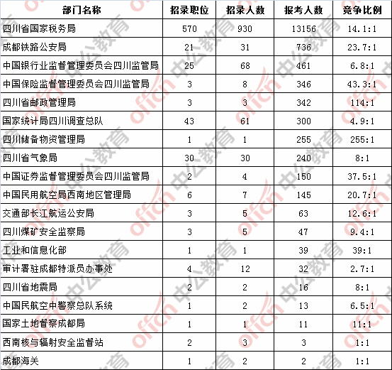 截止到19日16時,通過審核人數前三位的部門依次是:四川省國家稅務局,成都鐵路公安局,中國銀行業監督管理委員會四川監管局,三部門通過審核總人數達14353人,占已通過審核總人數87.7%。