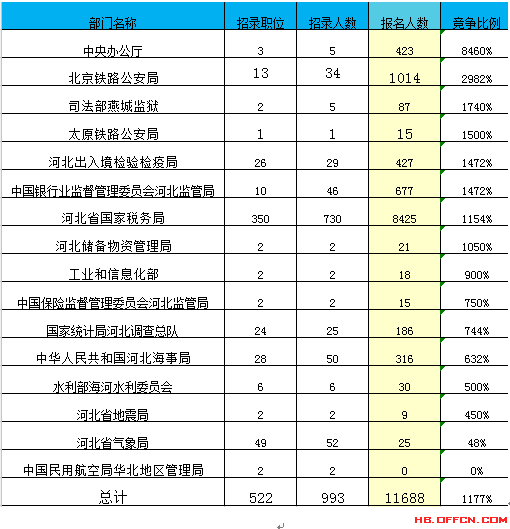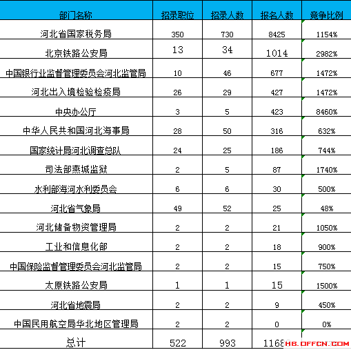 截止到19日16時,通過審核人數前三位的部門依次是:河北省國家稅務局、北京鐵路公安局、中國銀行業監督管理委員會河北監管局,三部門通過審核總人數達10116人,占通過審核總人數的86%。