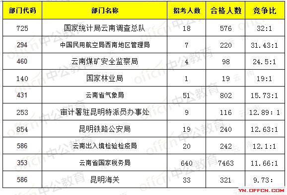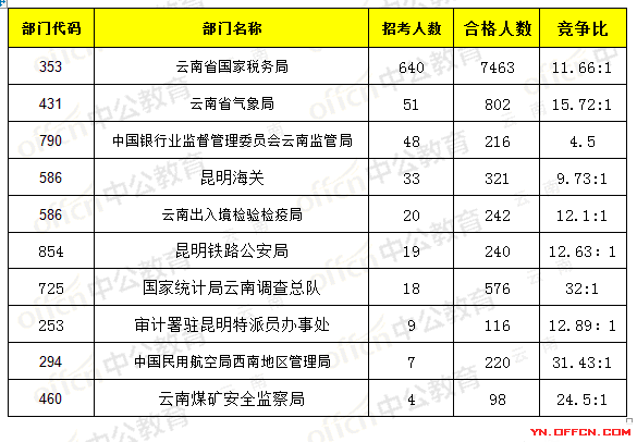 為幫助廣大考生更清晰的了解今日報名情況,云南中公網校整理了審核通過人數部門排名,供廣大考生參考: