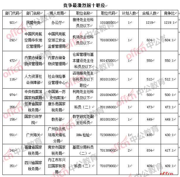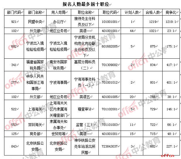 【截至19日16時】2017國考報名數據:民盟中央摘得“雙冠”