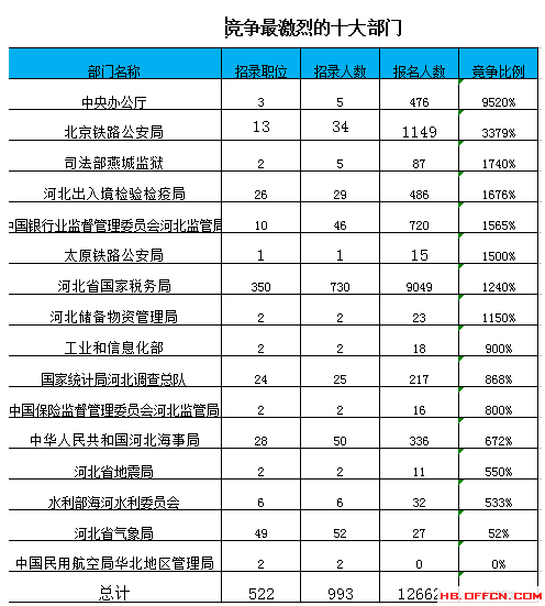 為幫助廣大考生更清晰的了解今日報名情況,河北中公網(wǎng)校整理了審核通過人數(shù)前十位的部門以及競爭比例最激烈的十大部門,供廣大考生參考:
