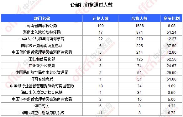 【截至20日8時】2017國考報名海南3511人過審 海關繼續“遭冷”