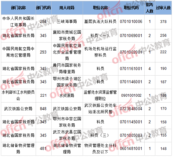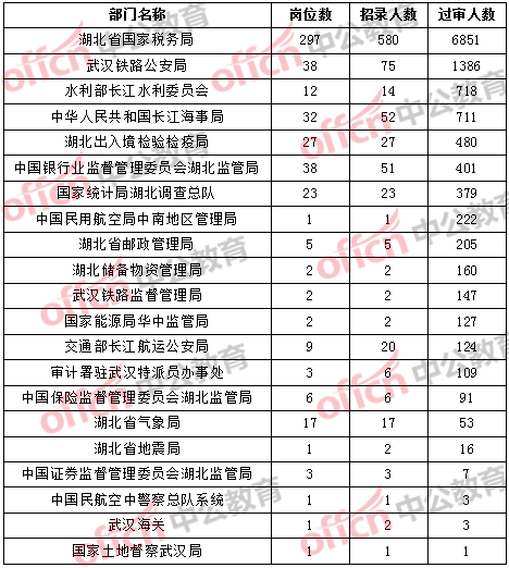 【截至20日8時】2017國考報名湖北12194人通過審核,56個職位無人通過審核
