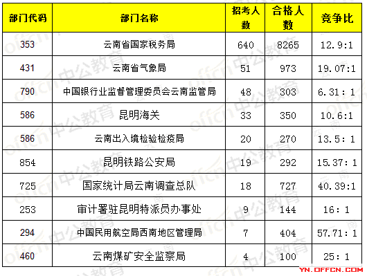 為幫助廣大考生更清晰地了解今日報名情況,云南中公網校整理了審核通過人數部門排名,供廣大考生參考: