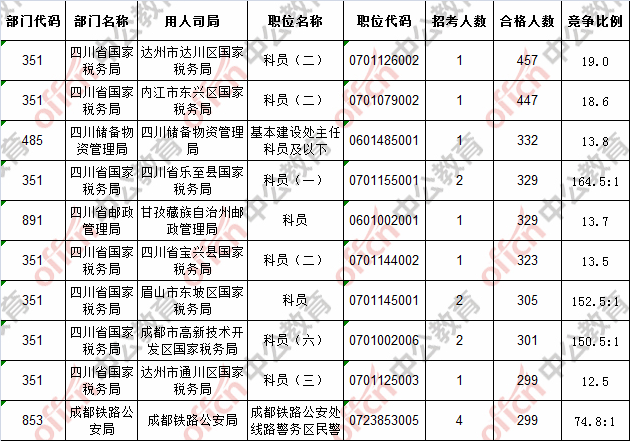 首日報名通過審核人數前十的職位主要集四川省國家稅務局等部門,具體信息如下:
