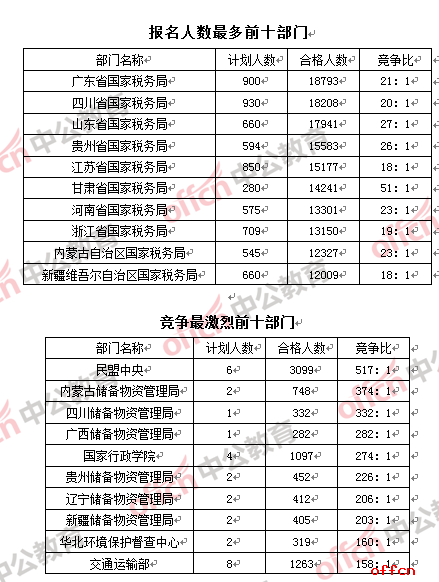 13省國稅報名人數過萬,21個部門競爭過百