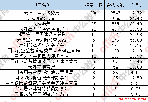 為幫助廣大考生更清晰的了解今日報名情況,天津中公 網校整理了審核通過人數前五位的部門以及競爭比例最激烈的五大部門,供廣大考生參考: