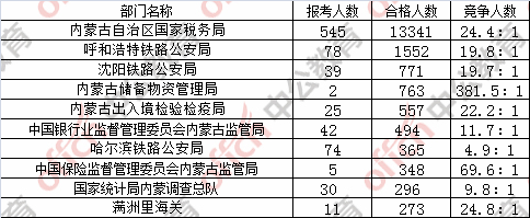 為幫助廣大考生更清晰的了解今日報名情況,內蒙古中公網校整理了審核通過人數前十位的部門,供廣大考生參考: