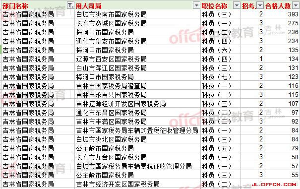 吉林省國(guó)家稅務(wù)局報(bào)名人數(shù)最多前20崗位