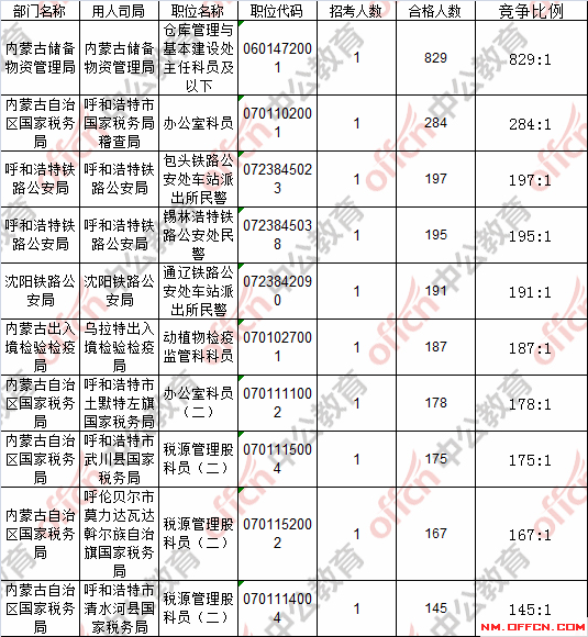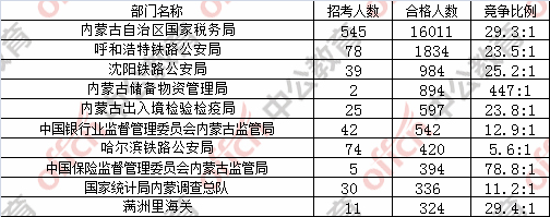 為幫助廣大考生更清晰的了解今日報名情況,內蒙古中公網校整理了審核通過人數前十位的部門,供廣大考生參考: