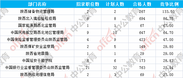 為幫助廣大考生更清晰的了解今日報名情況,陜西中公網校整理了審核通過人數前十位的部門以及競爭比例最激烈的十大部門,供廣大考生參考: