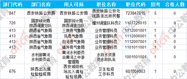 截止到22日8時,工作地點在陜西的職位共有8個無人報考,占全部職位的2.8%。下面是無人報考職位一覽表,陜西中公教育專家建議廣大考生多關注一些較冷職位,避免激烈競爭,結合自身條件,找到屬于自己的職位。
